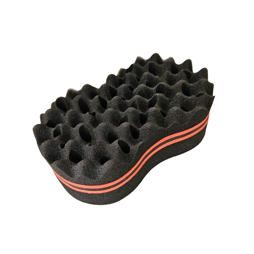 Esponja preta ondulada com faixa vermelha no meio
