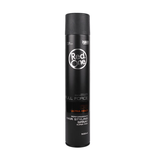 Spray fixador de cabelo Red One em lata preta com texto branco e laranja