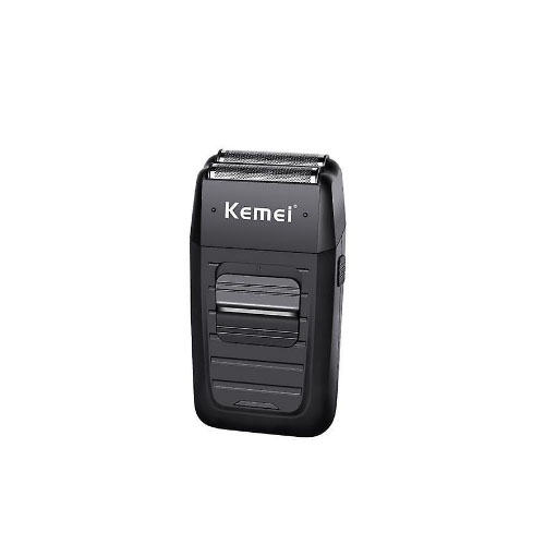 Aparelho de barbear elétrico preto Kemei num fundo branco