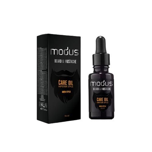 Frasco e embalagem preta de óleo para barba e bigode Modus