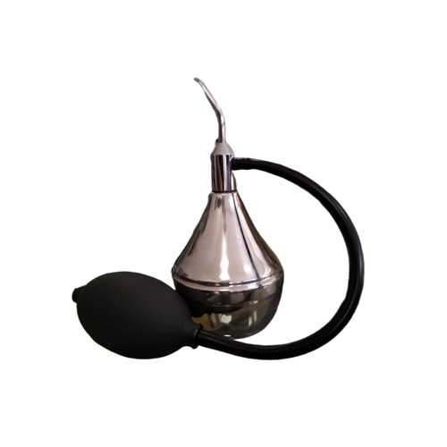 Perfumeiro manual prateado com bulbo preto e tubo flexível